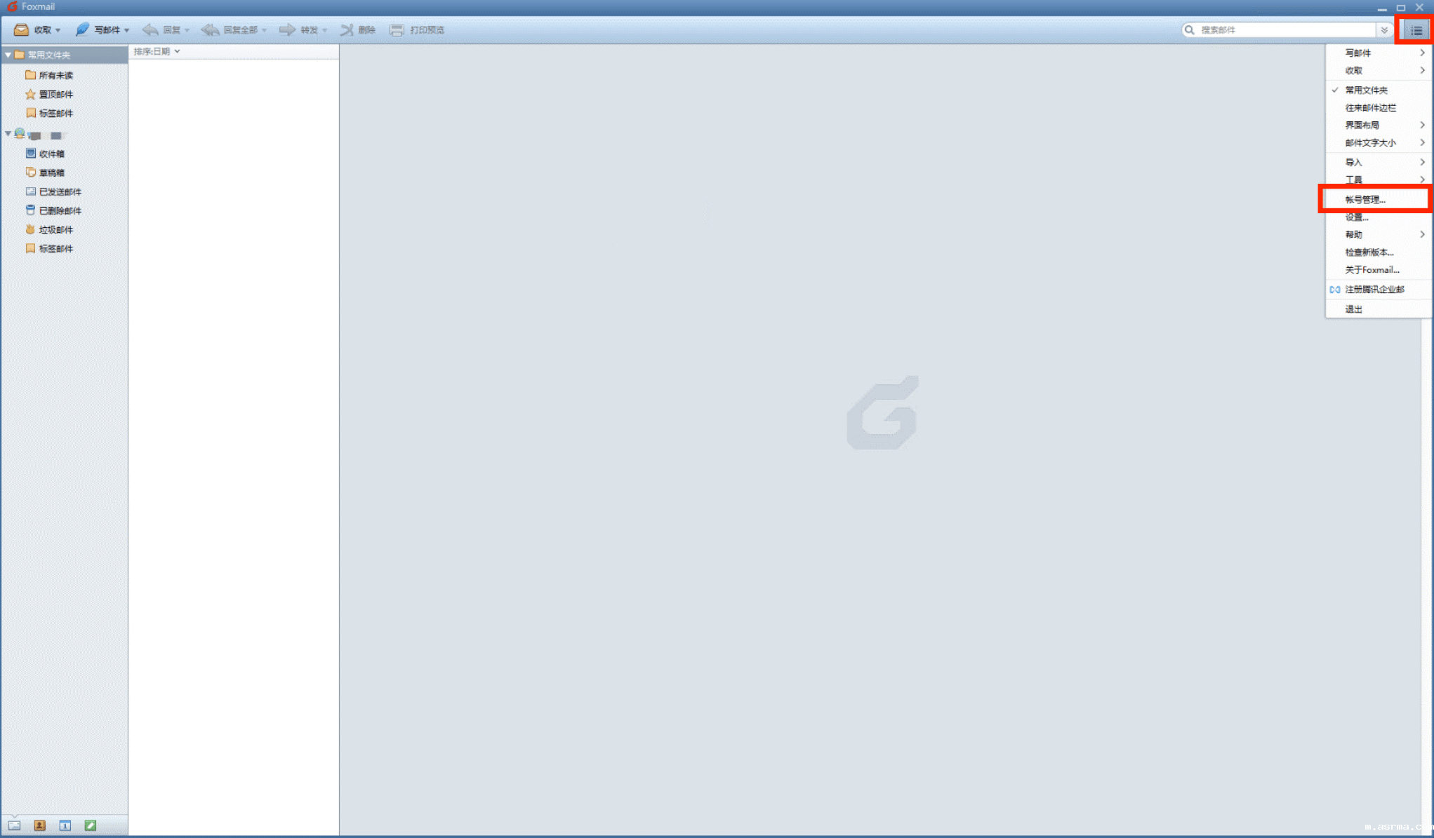 1. 打开Foxmail客户端,点击右侧“系统设置”按钮—>“帐号管理”。