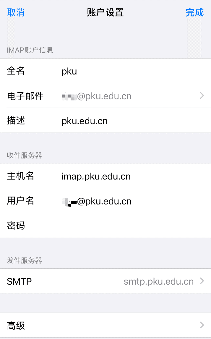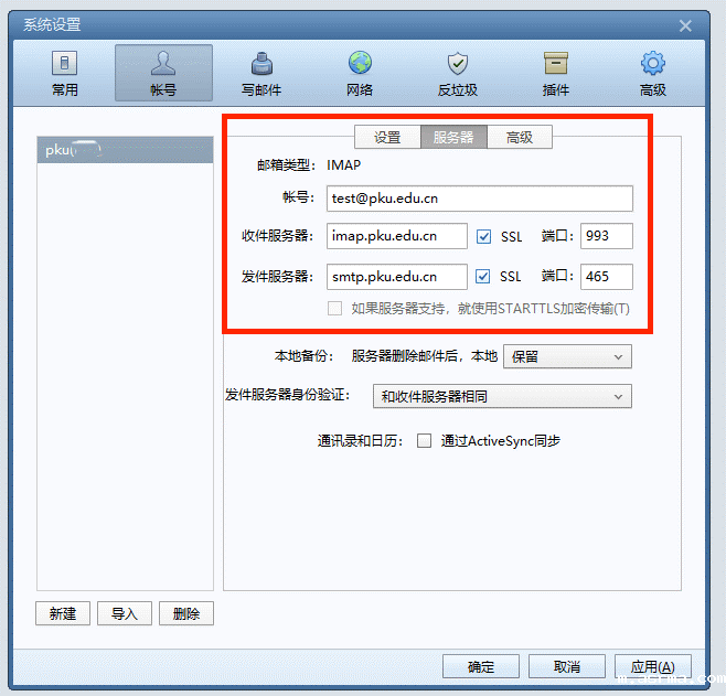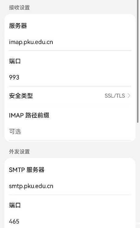 提示:本说明以 test@pku.edu.cn 作为邮箱地址,当按照下面方法设置邮箱时,请将test@pku.edu.cn替换为您的邮箱地址。