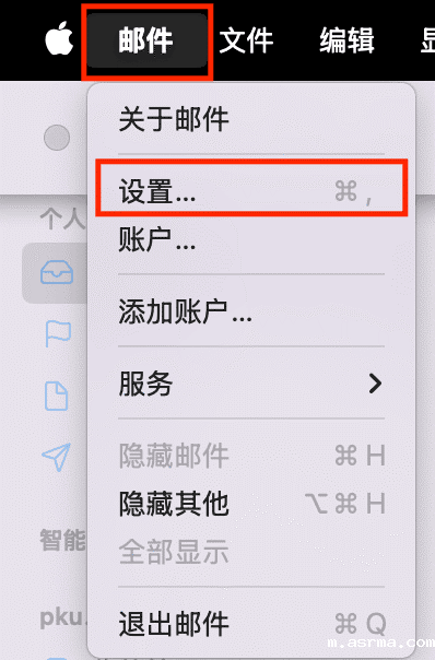 1. 打开Mac邮件客户端,点击屏幕左上角“邮件”按钮—>“设置”,进入设置页面。