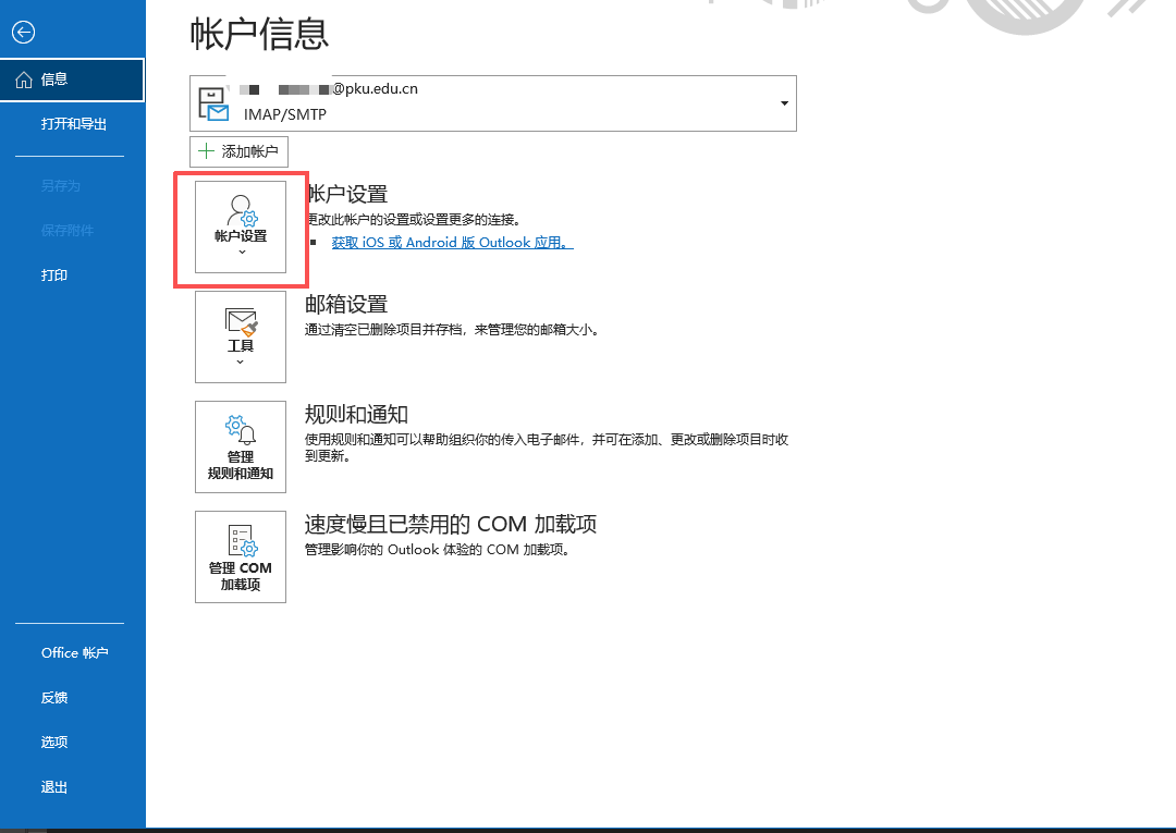 2. 在“帐户信息”窗口里,点“帐户设置”: